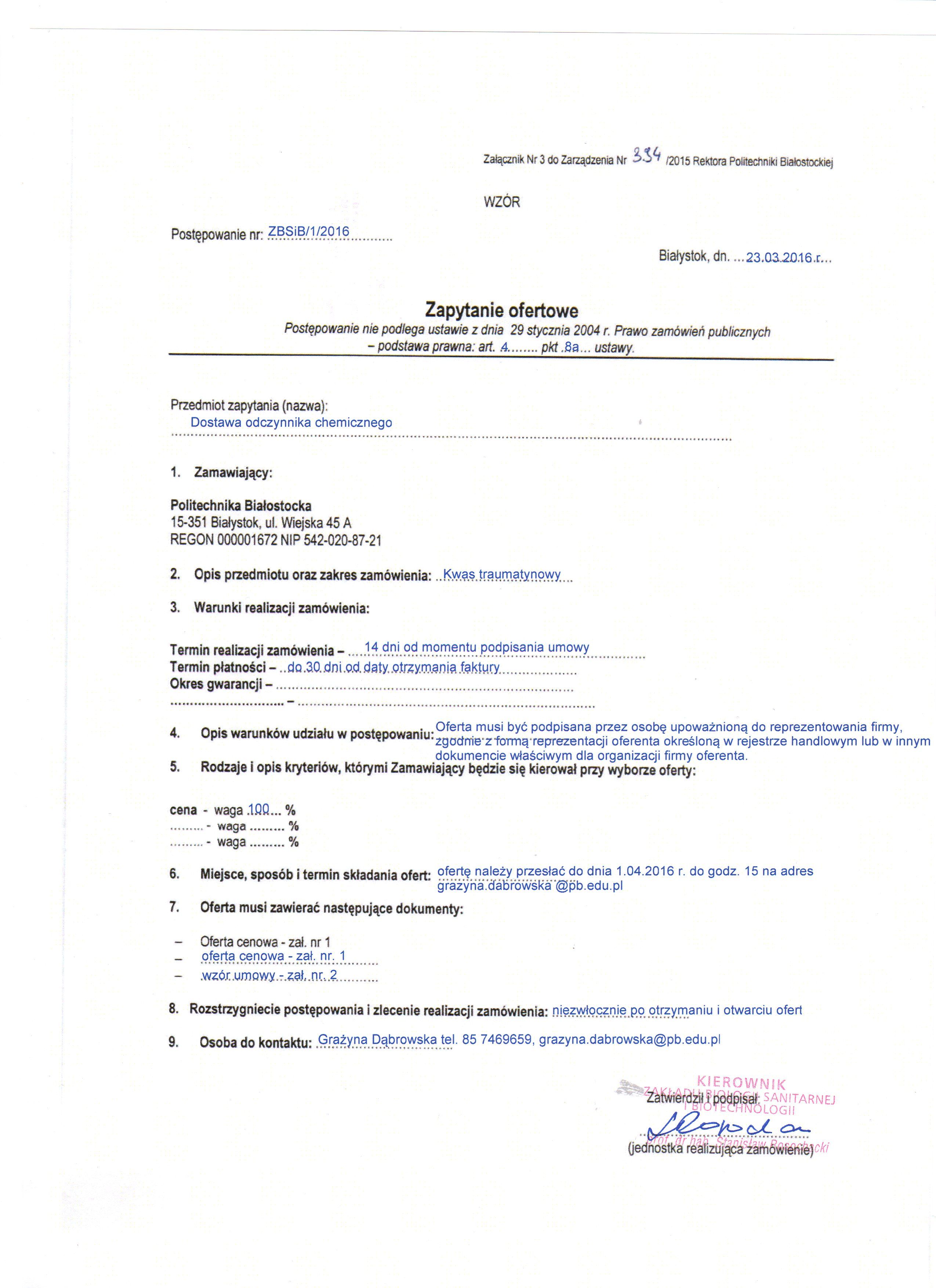 Dostawa odczynnika chemicznego - kwas traumatynowy