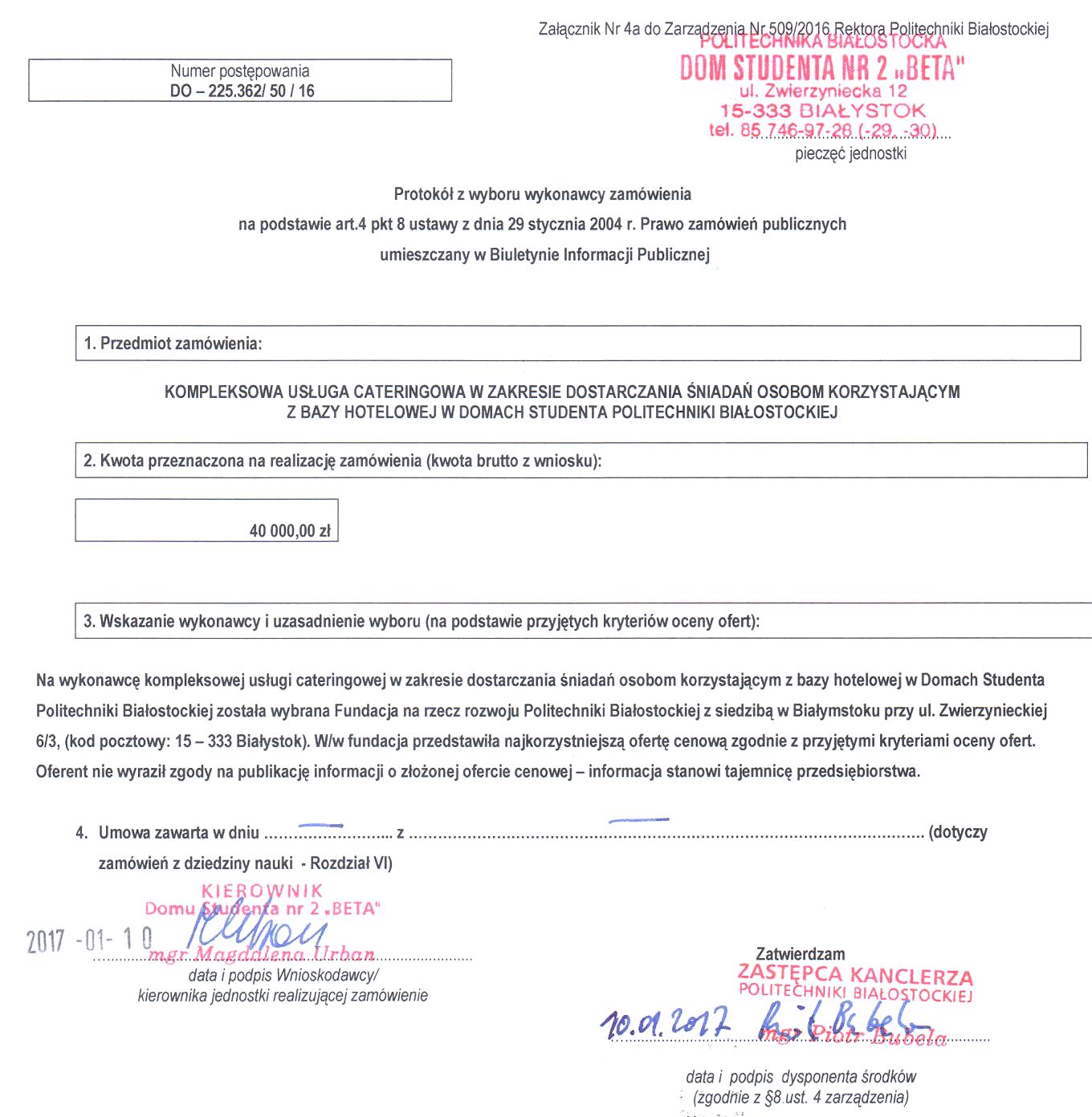 Wykonanie i sukcesywna dostawa pieczątek na potrzeby Politechniki Białostockiej |